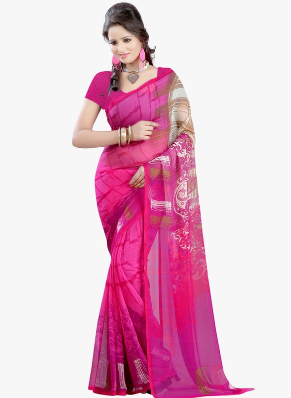 Lookslady Pink Printed Saree