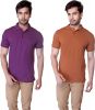 LUCfashion Solid Men's Polo Neck Purple, Brown T-Shirt(Pack of 2)