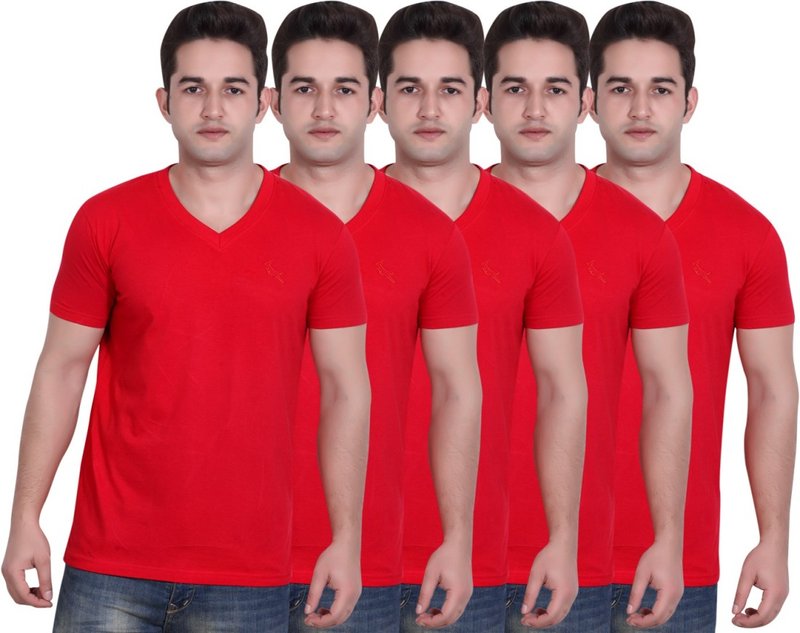 LUCfashion Solid Men's V-neck Red T-Shirt(Pack of 5)
