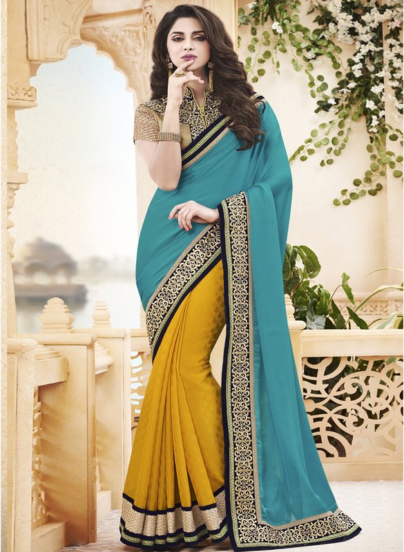 Mahotsav Yellow Embroidered Saree