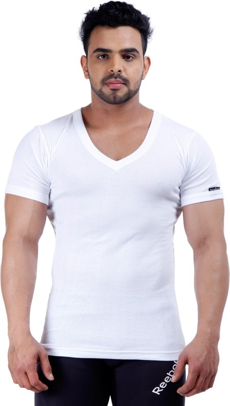 Male Basics Solid Men's V-neck White T-Shirt