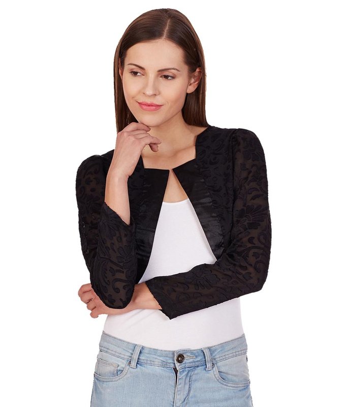 SnapDeal.com has Meee Black Polyester Blend Shrugs for Rs.795.00 - Rs.196.00 (Instant Discount) = Rs.599.00 with Free Shipping