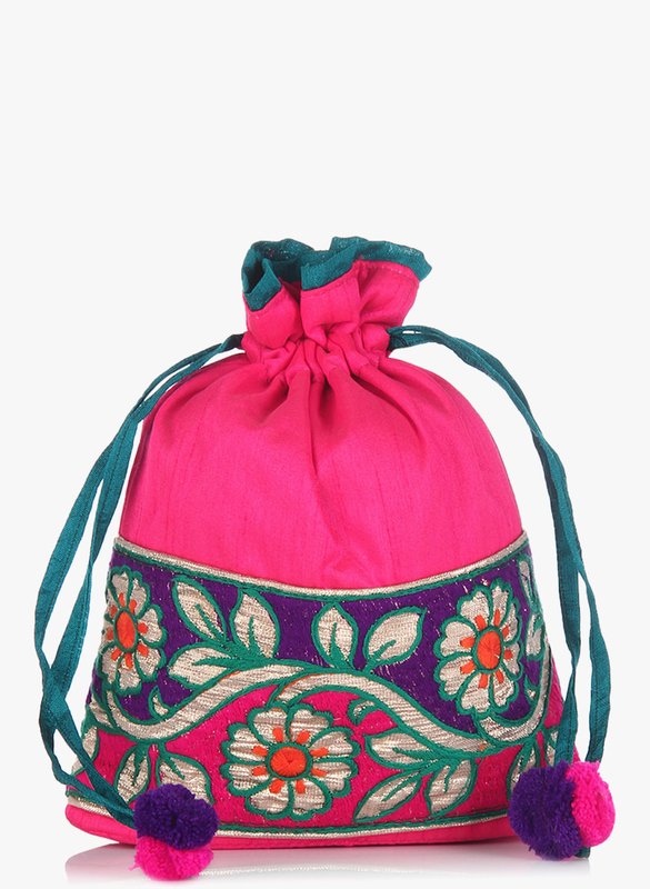 Molcha Pink/Multi Party Wear Embroidered Potli
