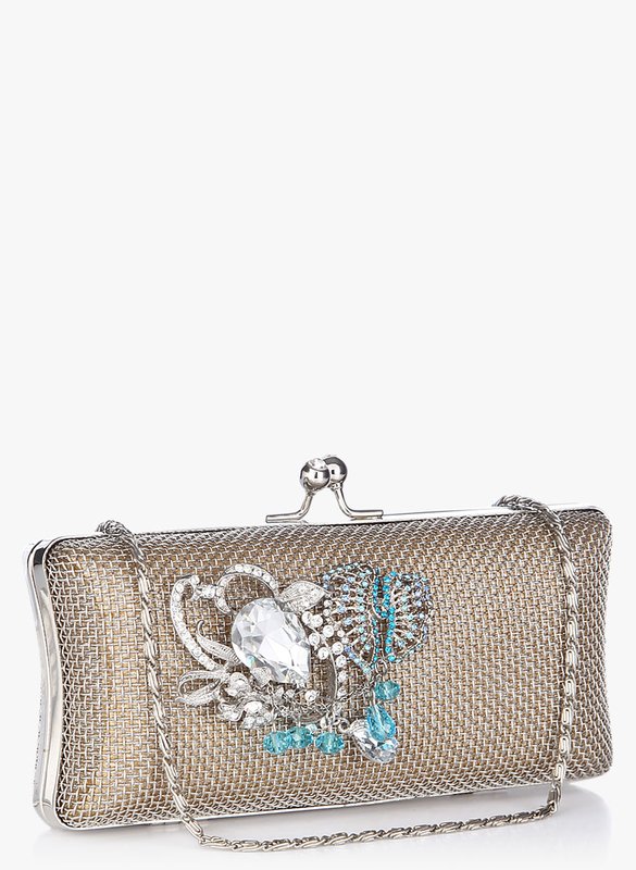 Jabong has Molcha Silver/Multi Cluster Of Crystal Mesh Box Clutch for Rs.2,999.00 with Free Shipping