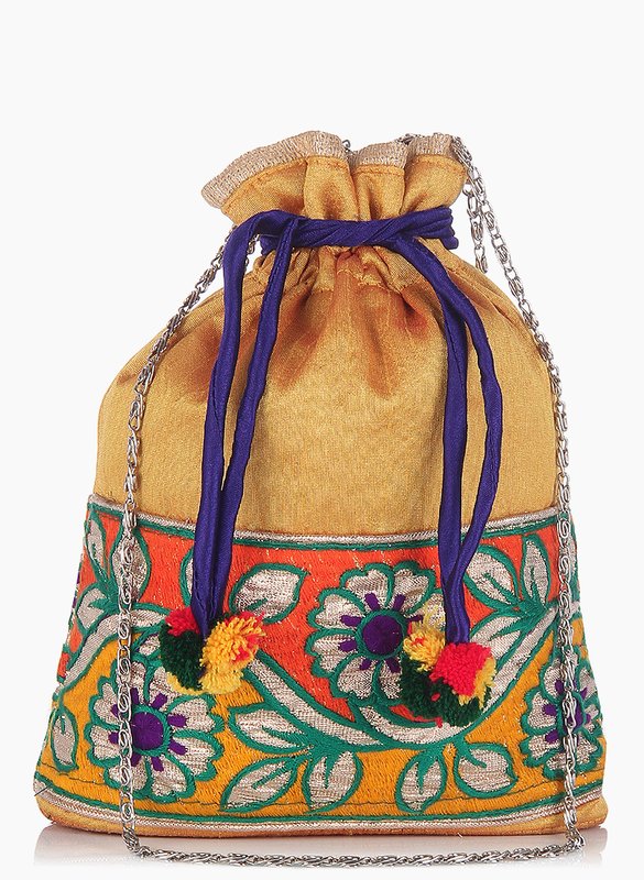 Molcha Yellow/Multi Party Wear Embroidered Potli