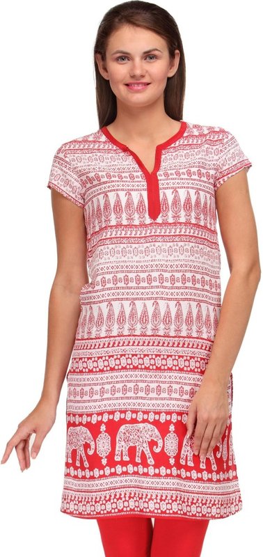 Flipkart has Motif Printed Women's Straight Kurta(White, Red) for Rs.996.00 - Rs.397.00 (Instant Discount) = Rs.599.00 with Free Shipping