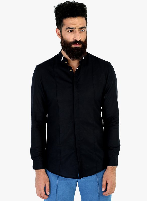 Mr Button Black Solid Slim Fit Casual Shirt