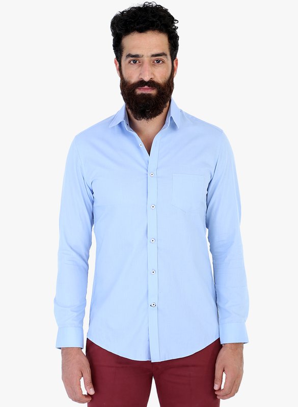 Mr Button Blue Solid Slim Fit Casual Shirt