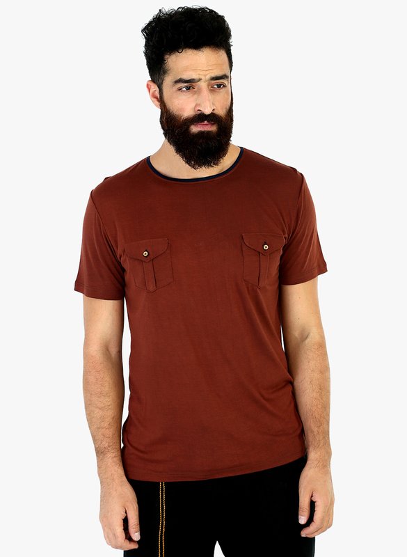 Mr Button Brown Solid Round Neck T-Shirt