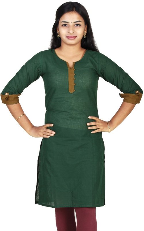 mReach Casual Solid Women's Kurti(Green, Brown)