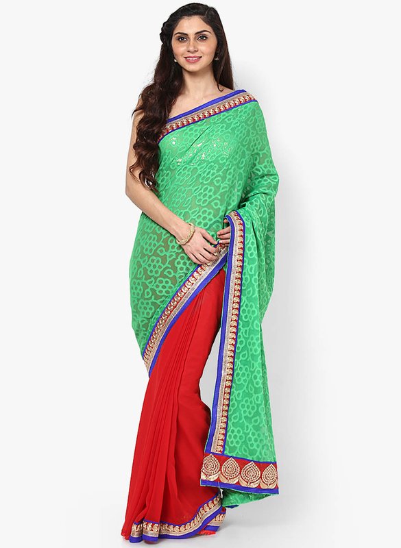 Jabong has Mrignain Chiffon Green Saree for Rs.2,699.00 with Free Shipping