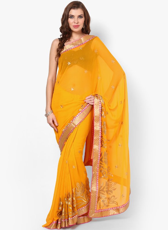Jabong has Mrignain Chiffon Yellow Embroidered Saree for Rs.3,399.00 with Free Shipping