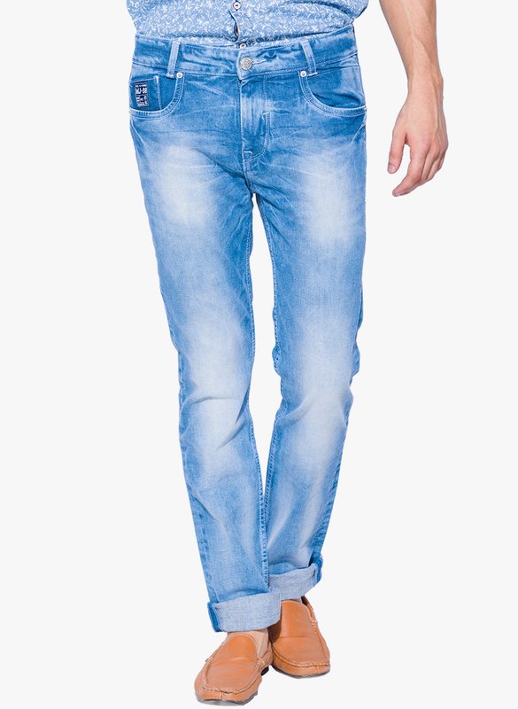 Mufti Light Blue Mid Rise Regular Fit Jeans