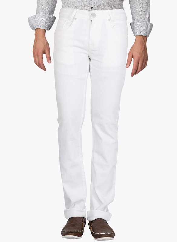 Mufti White Mid Rise Slim Fit Jeans