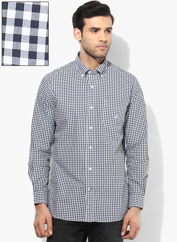 Jabong has Nautica Navy Blue Checked Regular Fit Casual Shirt for Rs.3,599.00 with Free Shipping