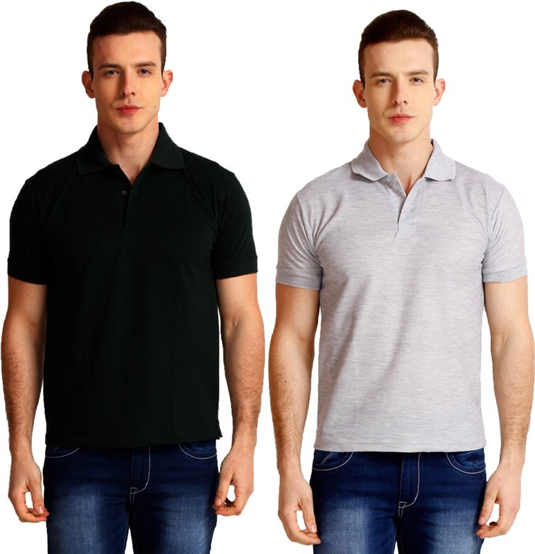Nimya Solid Men's Polo Neck Black, Grey T-Shirt(Pack of 2)