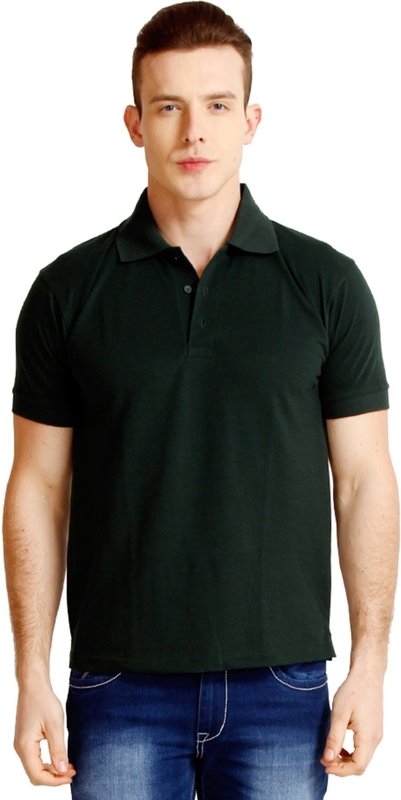 Nimya Solid Men's Polo Neck Dark Green T-Shirt