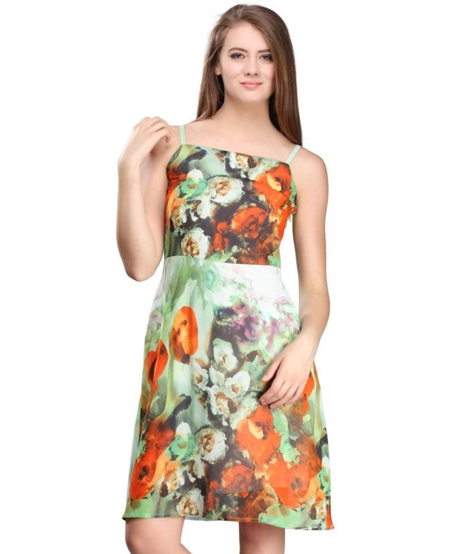 SnapDeal.com has Nineteen Green and Orange Floral Polyester Medium A Line Dress for Rs.1,499.00 - Rs.149.00 (Instant Discount) = Rs.1,350.00 with Free Shipping