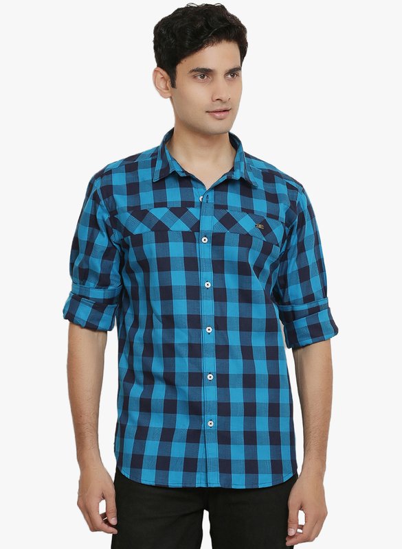 Orange Valley Blue Checked Slim Fit Casual Shirt
