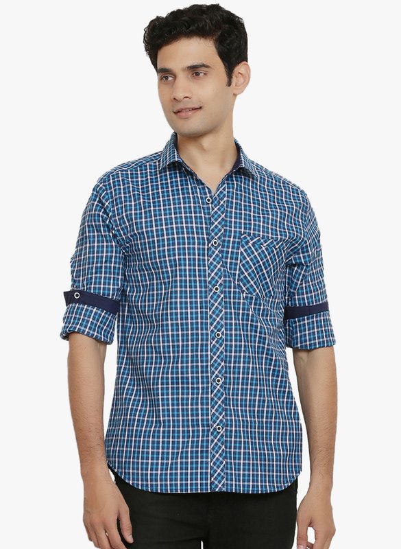 Orange Valley Blue Checked Slim Fit Casual Shirt
