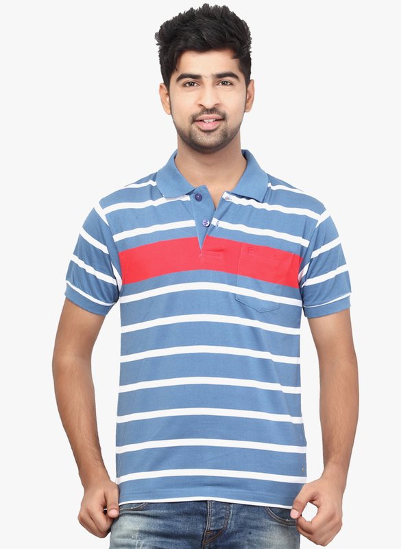 Orange Valley Blue Striped Polo T-Shirt
