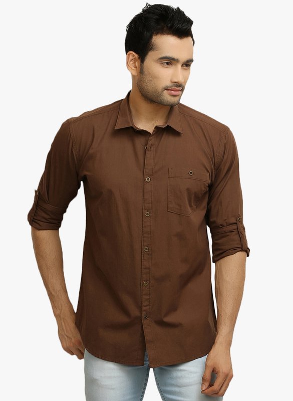 Orange Valley Brown Solid Slim Fit Casual Shirt