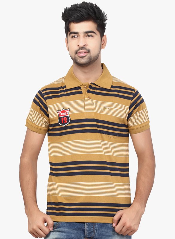 Orange Valley Brown Striped Polo T-Shirt