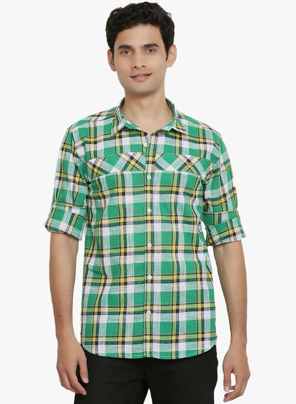 Orange Valley Green Checked Slim Fit Casual Shirt
