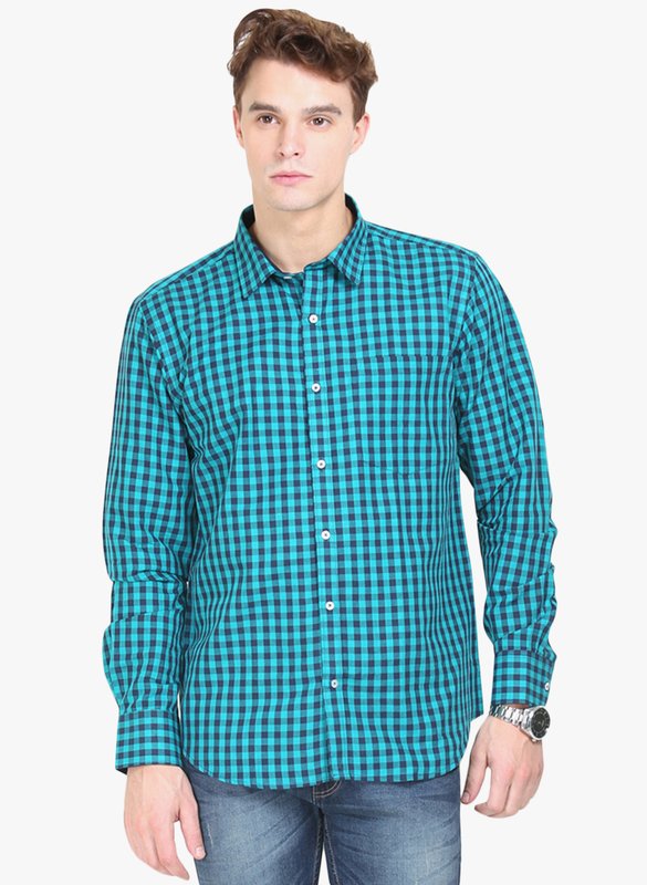 Orange Valley Green Checked Slim Fit Casual Shirt