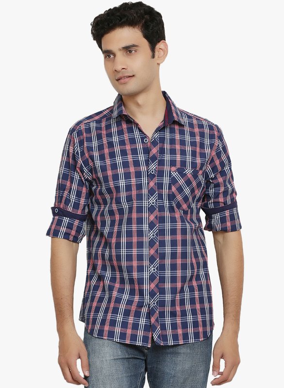 Jabong has Orange Valley Navy Blue Checked Slim Fit Casual Shirt for Rs.1,199.00 with Free Shipping