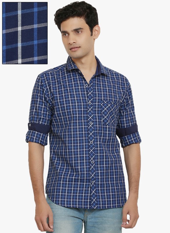 Jabong has Orange Valley Navy Blue Checked Slim Fit Casual Shirt for Rs.1,199.00 with Free Shipping