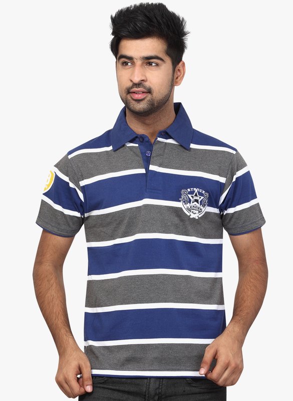 Orange Valley Navy Blue Striped Polo T-Shirt