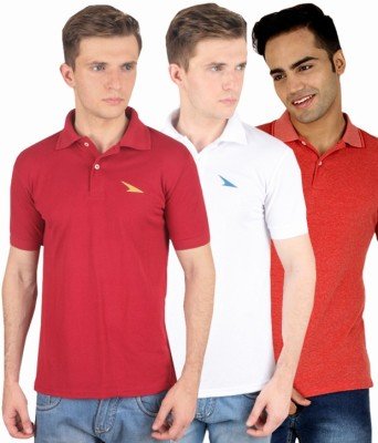 PRO Lapes Solid Men's Polo Neck Multicolor T-Shirt(Pack of 3)