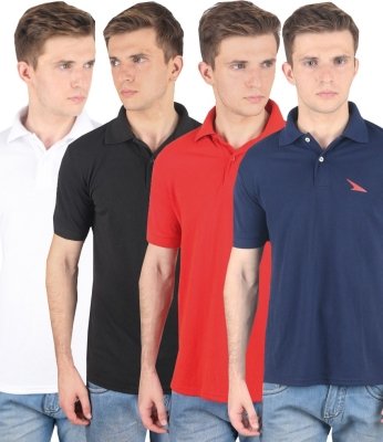 PRO Lapes Solid Men's Polo Neck Multicolor T-Shirt(Pack of 4)