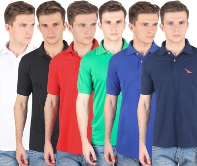 PRO Lapes Solid Men's Polo Neck Multicolor T-Shirt(Pack of 6)
