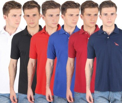 PRO Lapes Solid Men's Polo Neck Multicolor T-Shirt(Pack of 6)