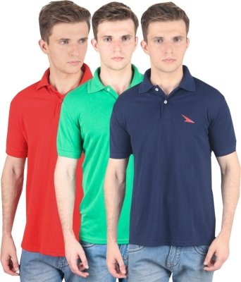 PRO Lapes Solid Men's Polo Neck Red, Green, Blue T-Shirt(Pack of 3)