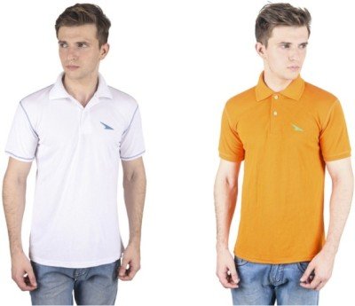 PRO Lapes Solid Men's Polo Neck White, Orange T-Shirt(Pack of 2)