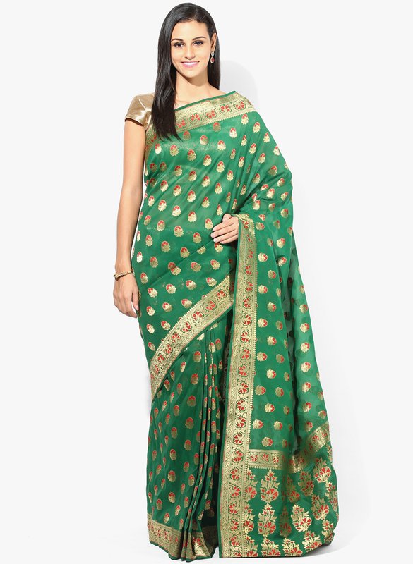 Jabong has Rang Banarasi Georgette Silk Multi Zari Work Banarasi Green Saree for Rs.8,999.00 with Free Shipping