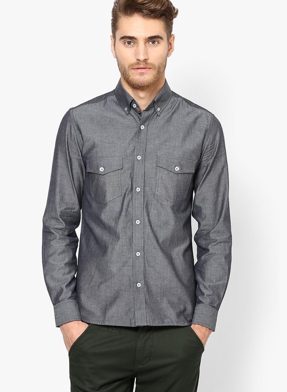 Jabong has Rigo Charcoal Grey Solid Slim Fit Casual Shirt for Rs.999.00 with Free Shipping