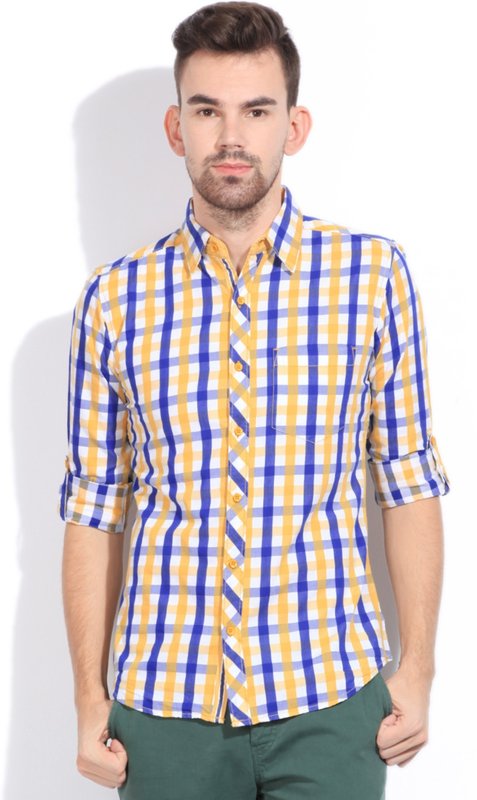 Flipkart has Riot Jeans Men's Checkered Casual Blue, Yellow, White Shirt for Rs.1,199.00 - Rs.720.00 (Instant Discount) = Rs.479.00 plus Shipping charges