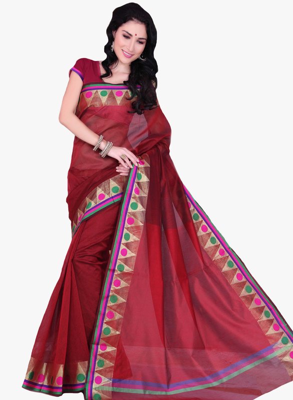 Jabong has Roop Kashish Maroon Solid Saree for Rs.4,499.00 with Free Shipping