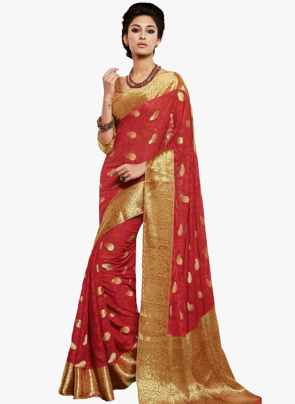 Jabong has Roop Kashish Red Embroidered Saree for Rs.6,199.00 with Free Shipping
