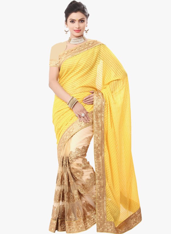 Jabong has Roop Kashish Yellow Embroidered Saree for Rs.5,899.00 with Free Shipping