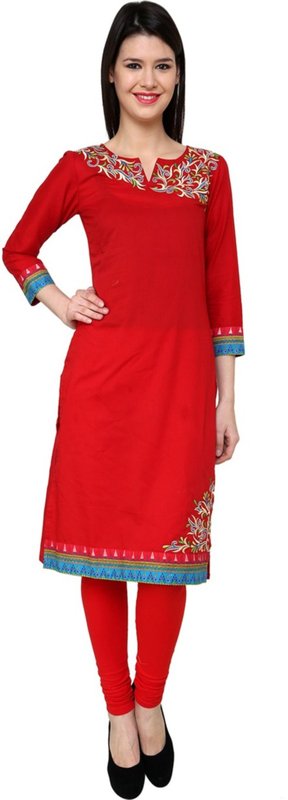 Rumara Casual Embroidered Women's Kurti(Red)