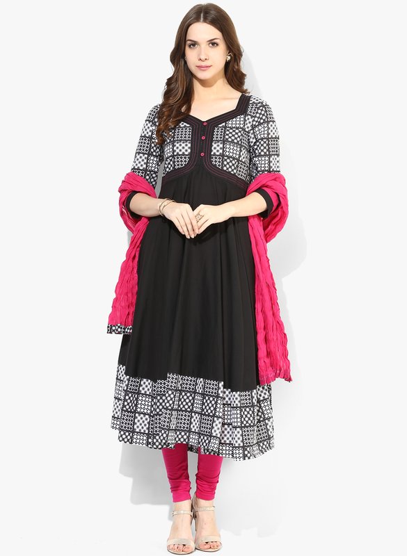 Jabong has Sangria Black Printed Yoke Flared Kurta With Churidar And Pink Voile Dupatta for Rs.1,999.00 - Rs.799.00 (Instant Discount) = Rs.1,200.00 with Free Shipping