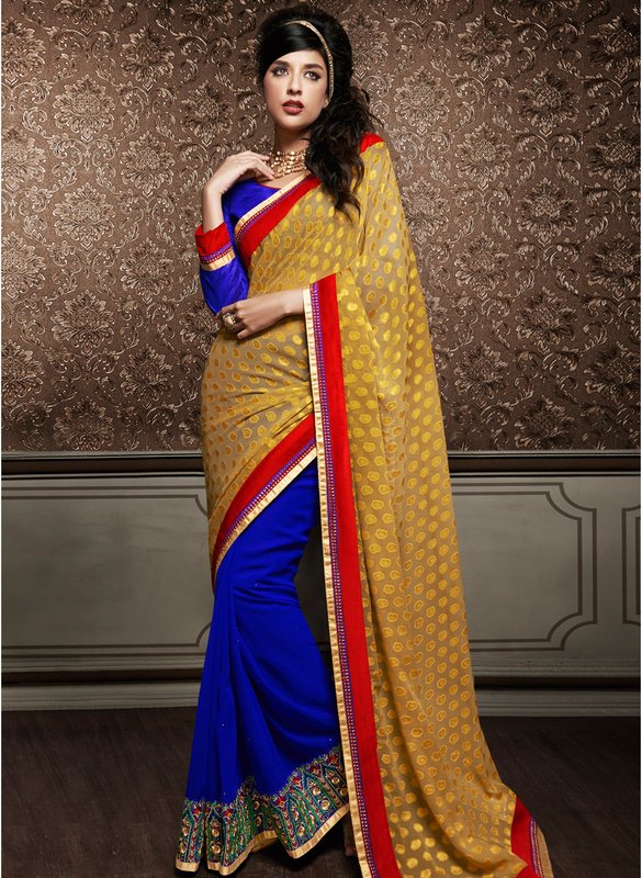 Jabong has Saree Mall Blue Embellished Saree for Rs.5,299.00 - Rs.2,915.00 (Instant Discount) = Rs.2,384.00 with Free Shipping
