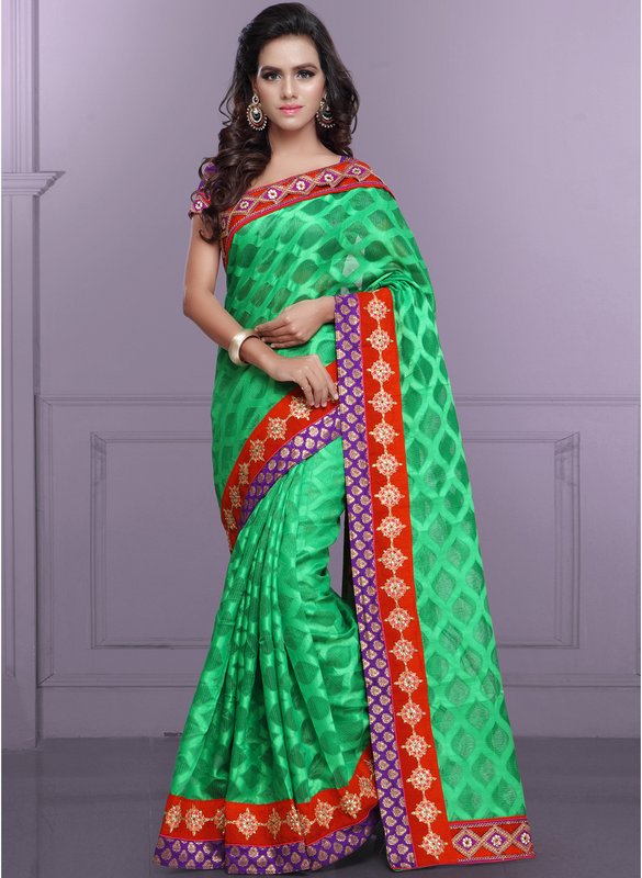Jabong has Saree Mall Green Embroidered Saree for Rs.4,549.00 with Free Shipping