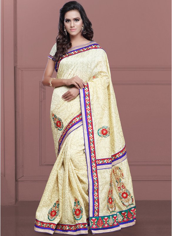 Jabong has Saree Mall Off White Embroidered Saree for Rs.4,549.00 with Free Shipping