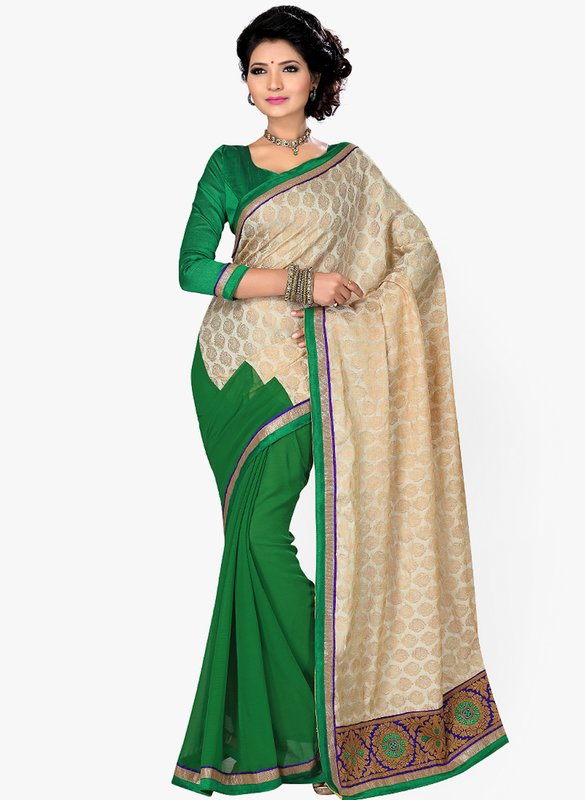 Jabong has Saree Swarg Green Printed Saree for Rs.1,490.00 with Free Shipping